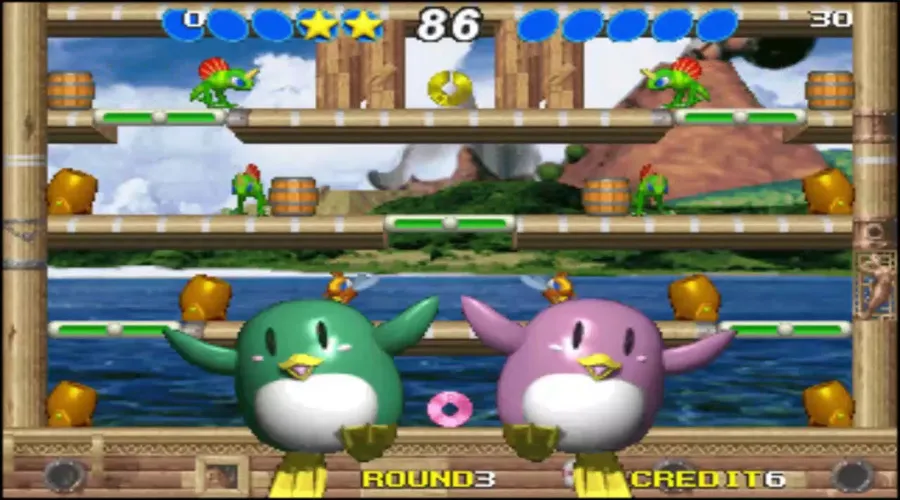 Penguin Brothers is a classic arcade-style platformer developed by Subsino. Players control two penguin characters who must defeat enemies by trapping them in ice blocks and kicking them across the stage. The game features colorful levels, simple controls, and cooperative multiplayer gameplay. Inspired by games like Snow Bros, it offers fast-paced action and fun mechanics. With its retro graphics and engaging gameplay, Penguin Brothers remains a nostalgic arcade experience.